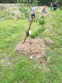 Dès 14h00, un retour sur des ateliers antérieurs a eu lieu dans ce magnifique jardin, des questions-réponses entre les adhérents et Guillaume, notre paysagiste ont poursuivi la visite pour terminer avec la plantation d'arbres à fruits sur buttes.